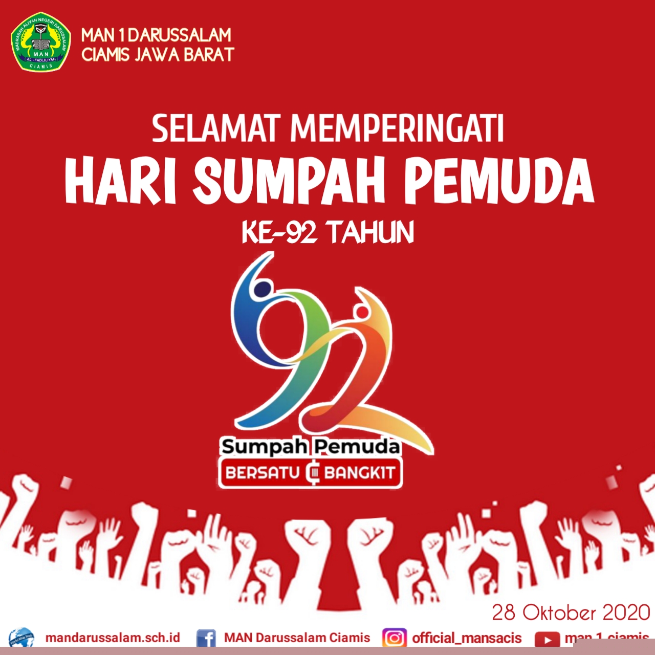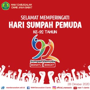 Selamat memperingati hari sumpah pemuda ke-92 tahun. Pemuda Indonesia bersatu dan bangkit berkontribusi membangun dan mengawal berjalannya demokrasi demi keadilan dan kesejahteraan bagi seluruh rakyat Indonesia.