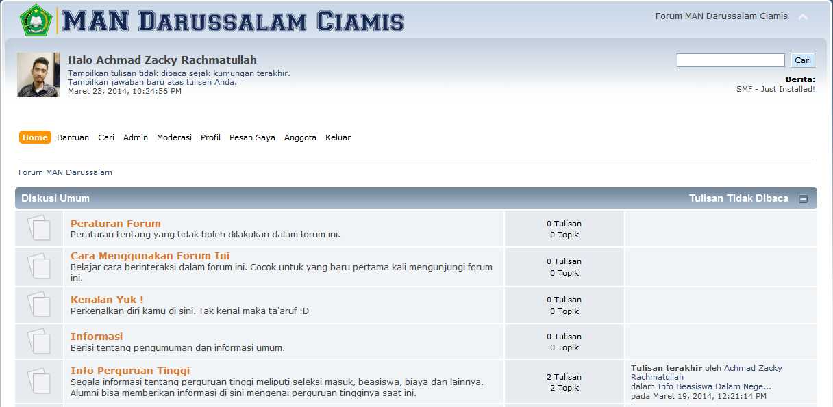 Kami juga menyediakan suatu forum online untuk mempermudah interaksi dan pembagian informasi bagi siswa, alumni, guru, staff dan pengunjung website. Alamat forum MAN Darussalam yakni http://forum.mandarussalam.sch.id.